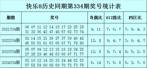 奇偶比分析:第334期历史同期奖号奇偶总比为39:41,奇偶号码走势与理论基本一致,去年同期奖号奇偶比开出6:14,今年第334期注意奇偶号码走势平衡,看好奇偶比10:10。
